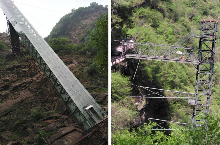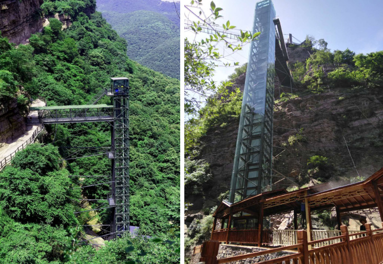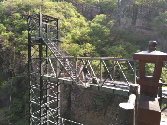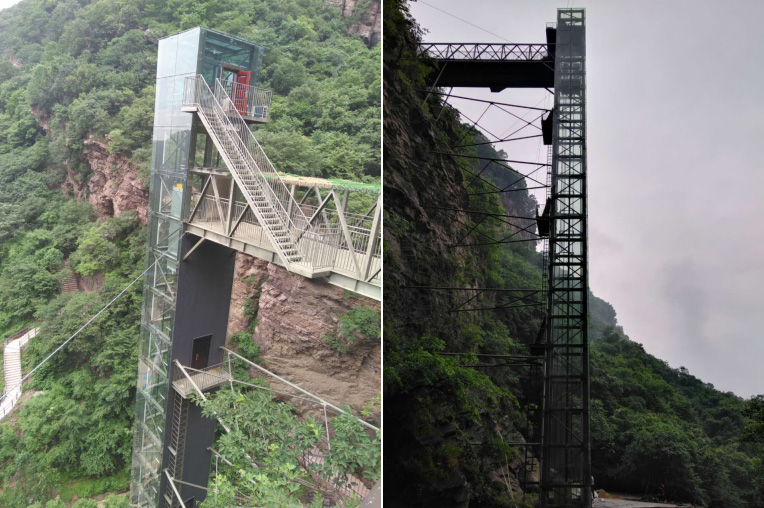 河南省平頂山市燈臺架景區鋼結構觀光電梯,運行高度78米,運行承重量1.6噸,于2017年10月開工,2018年4月1日投入使用。