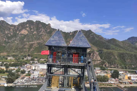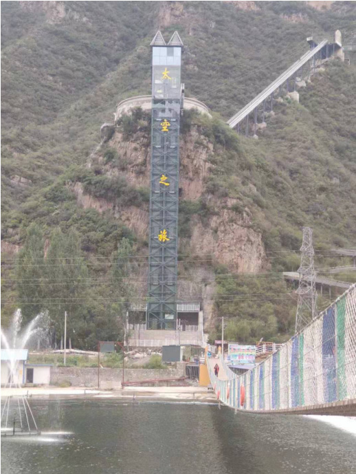 河北省保定市野三坡清泉山景區鋼結構電梯,運行高度80米,運行承載重量1.6噸,運行承載人數22人。于2018年11月開工,2019年投入使用。